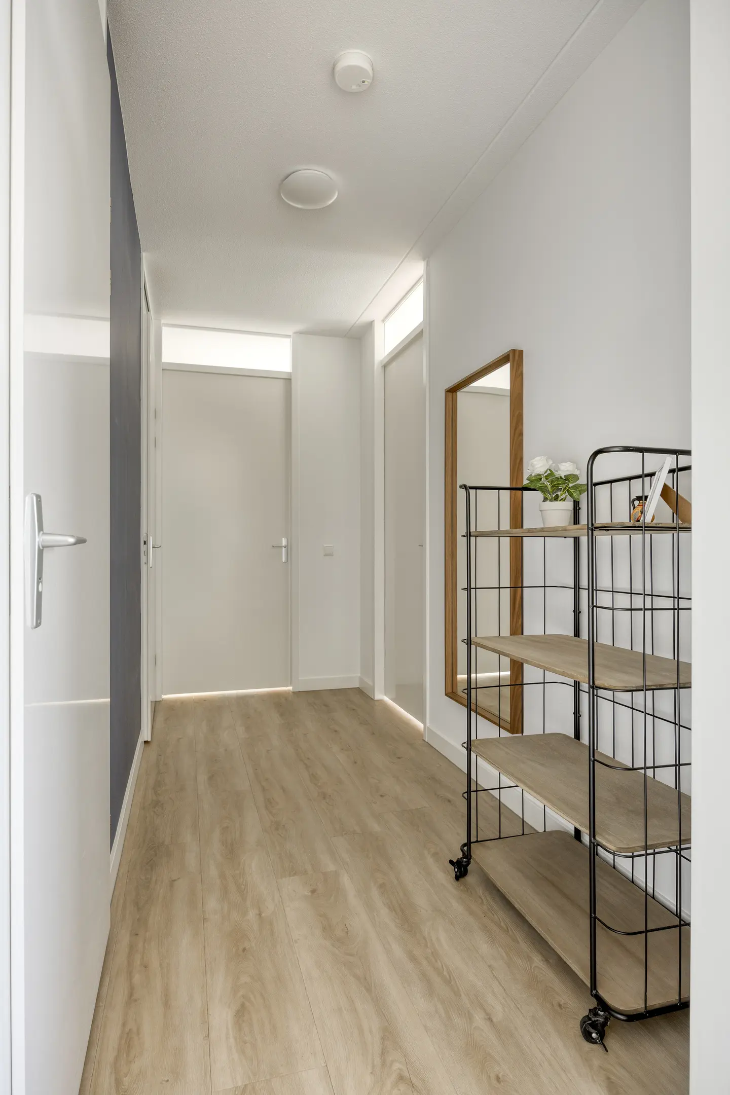 Bij binnenkomst valt direct de verzorgde afwerking op. De hal is strak en sfeervol afgewerkt met een moderne PVC-vloer.