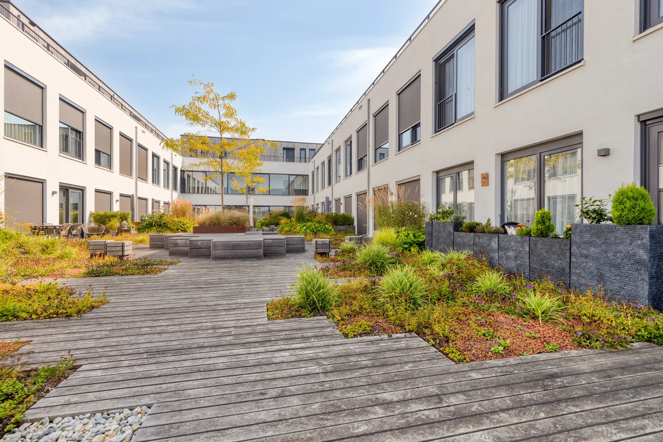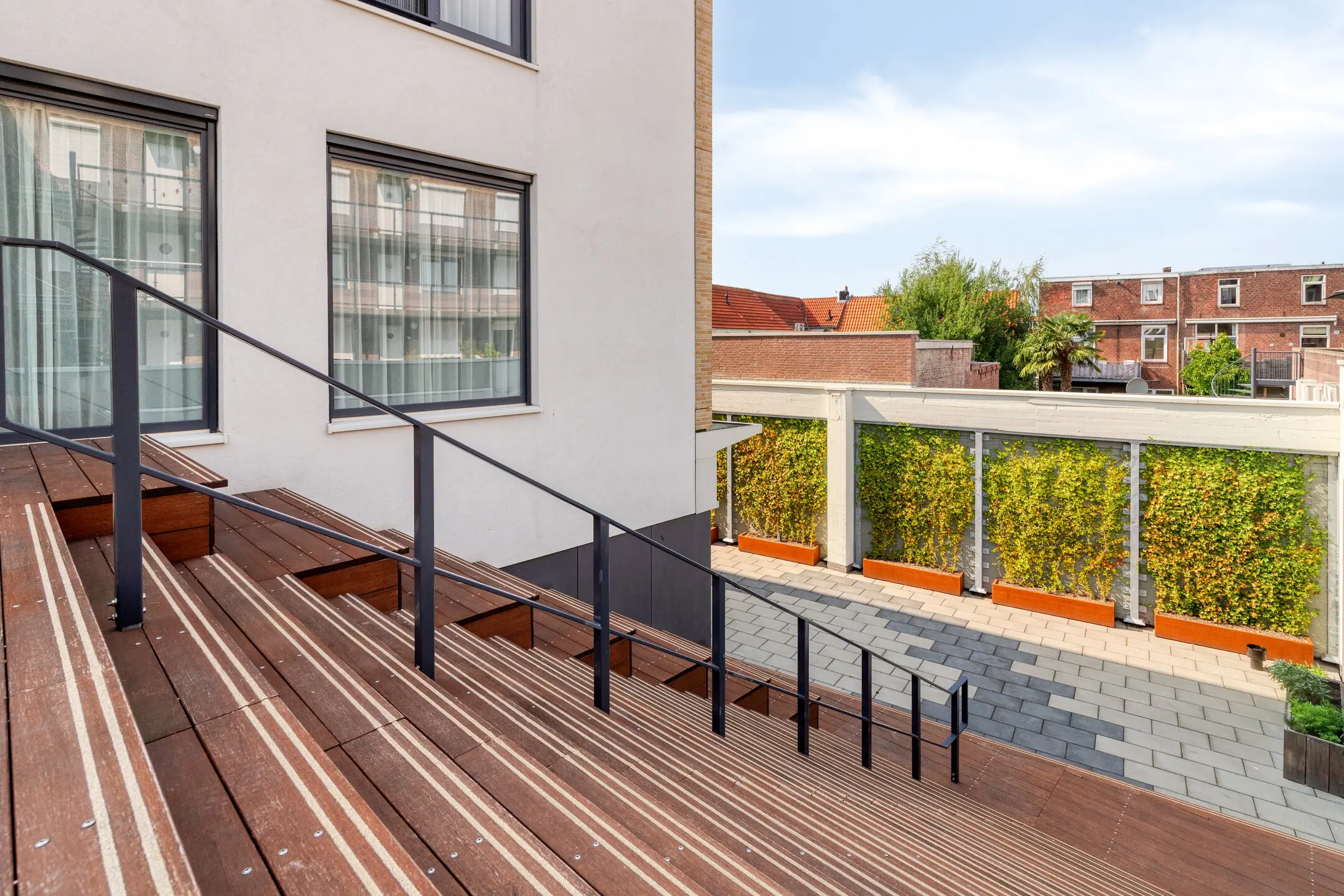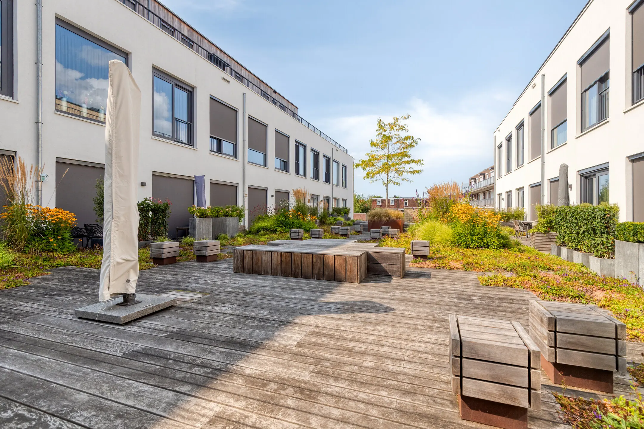 Hoewel het appartement zelf geen balkon heeft, wordt dit ruimschoots gecompenseerd door de fraaie gezamenlijke binnentuin. Deze rustige, groene oase is exclusief voor bewoners en biedt een heerlijke plek om buiten te zitten, een boek te lezen of gewoon te genieten van de rust midden in de stad.