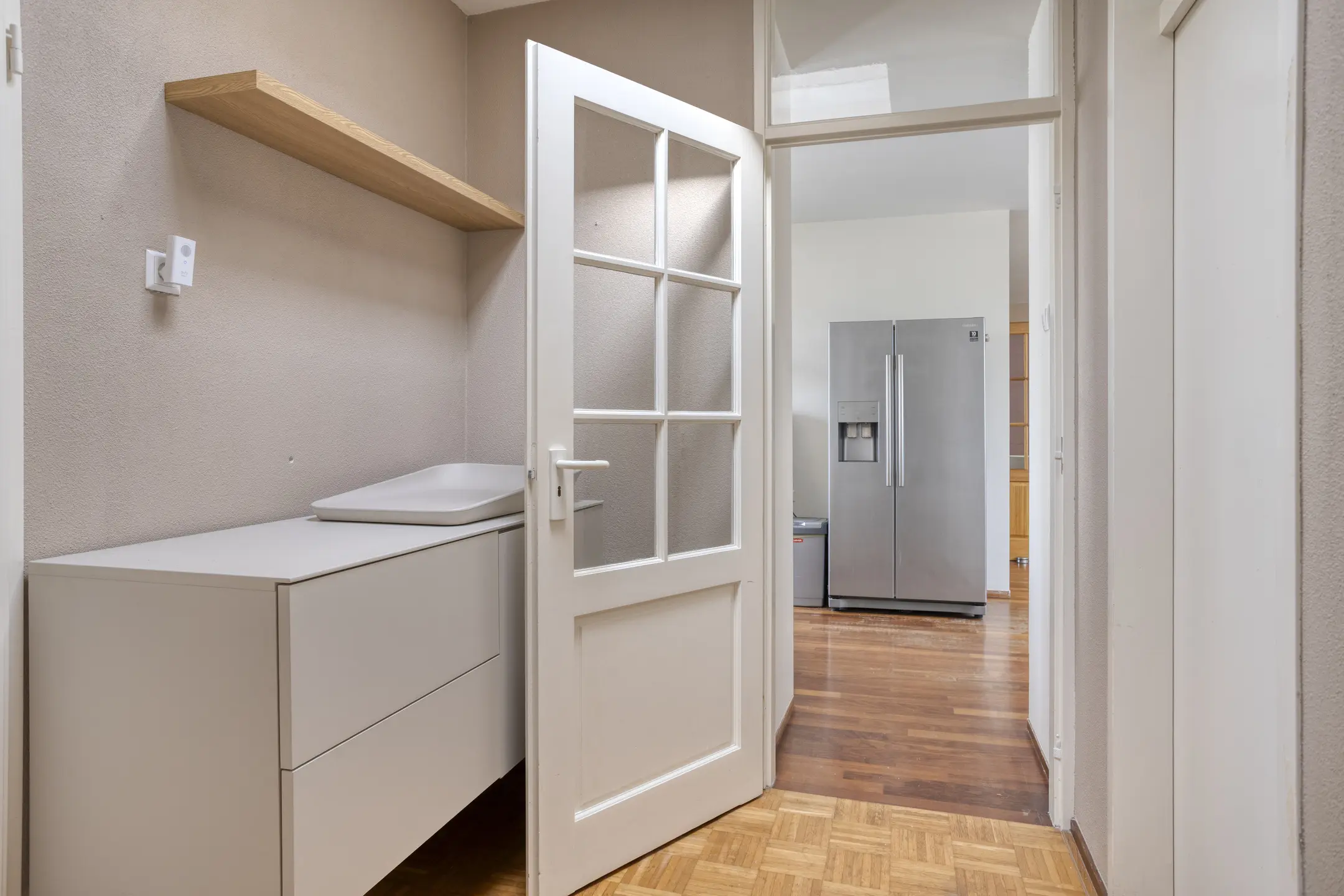 Tevens bevindt zich hier de meterkast.