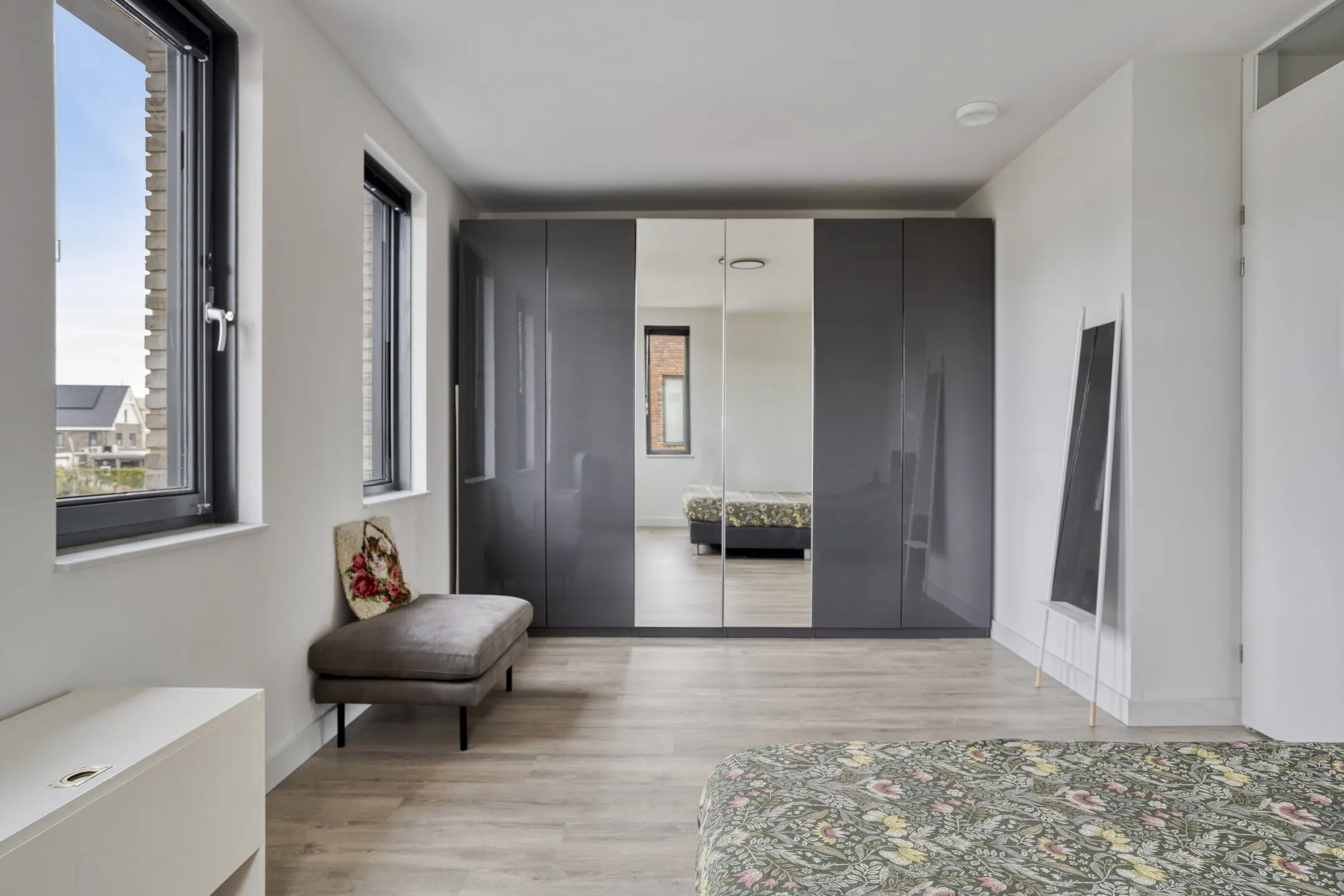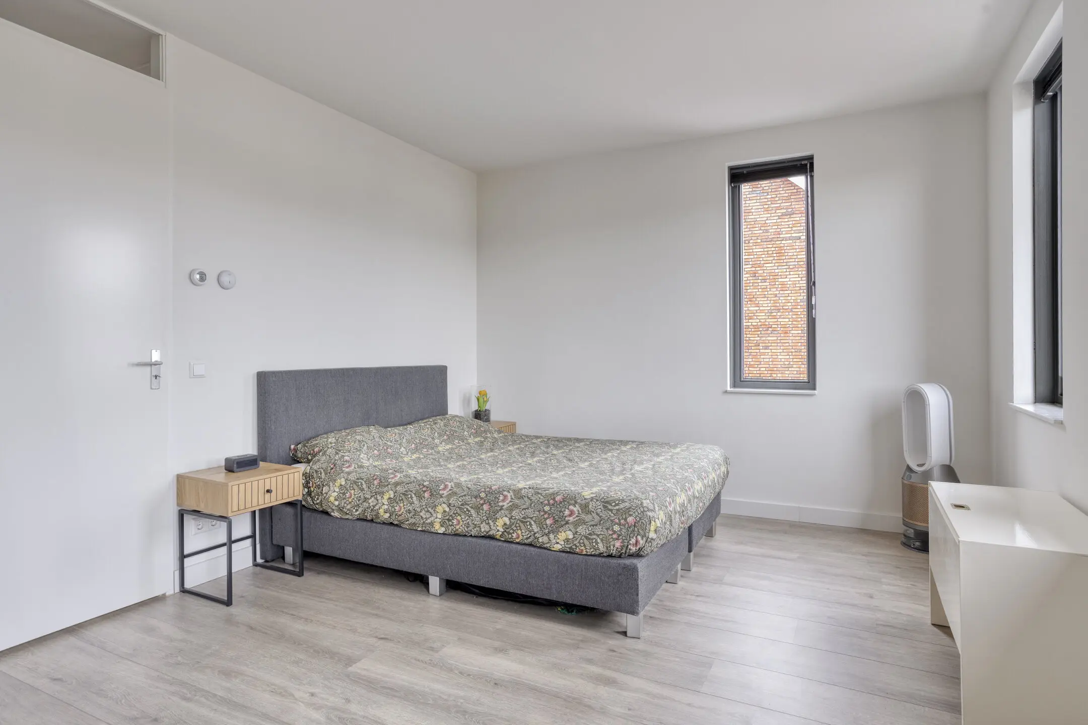 Master bedroom: royaal, licht en elegant, met voldoende ruimte voor een tweepersoonsbed, kasten en een gezellige zithoek.