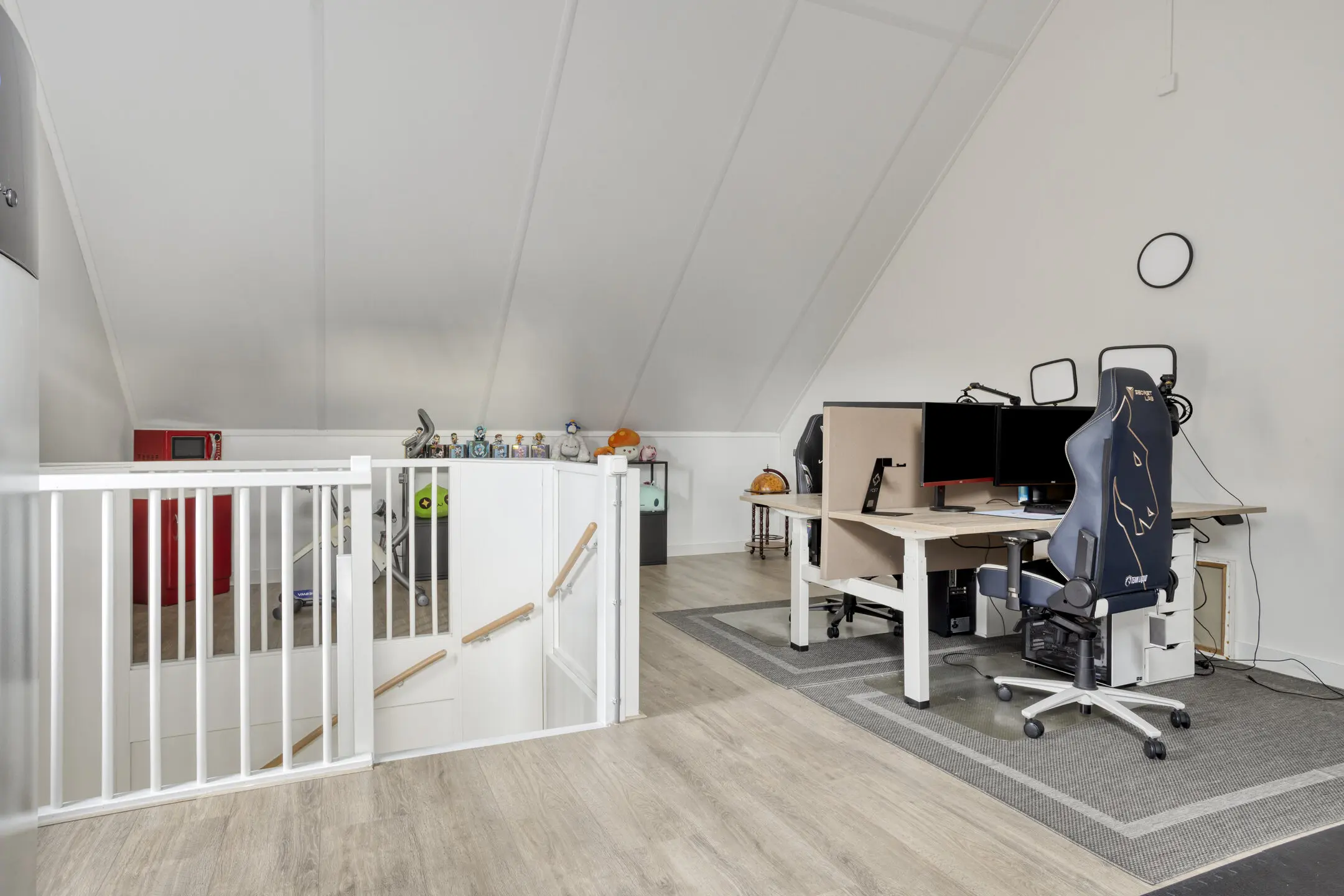 Een grote, multifunctionele ruimte op de tweede verdieping biedt talloze mogelijkheden: extra slaapkamer, werkruimte of hobbykamer – ideaal voor een gezin dat ruimte en flexibiliteit waardeert.
