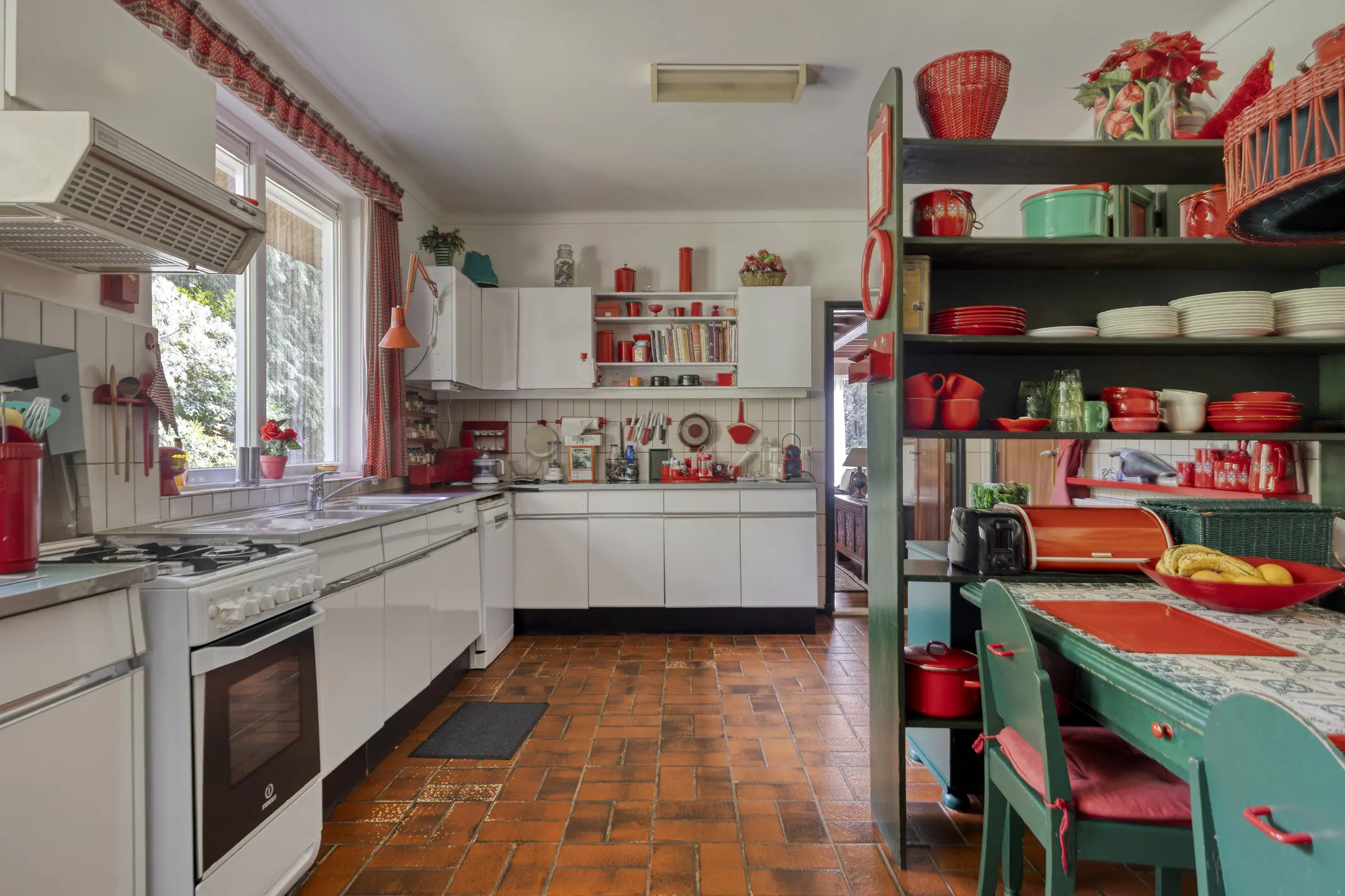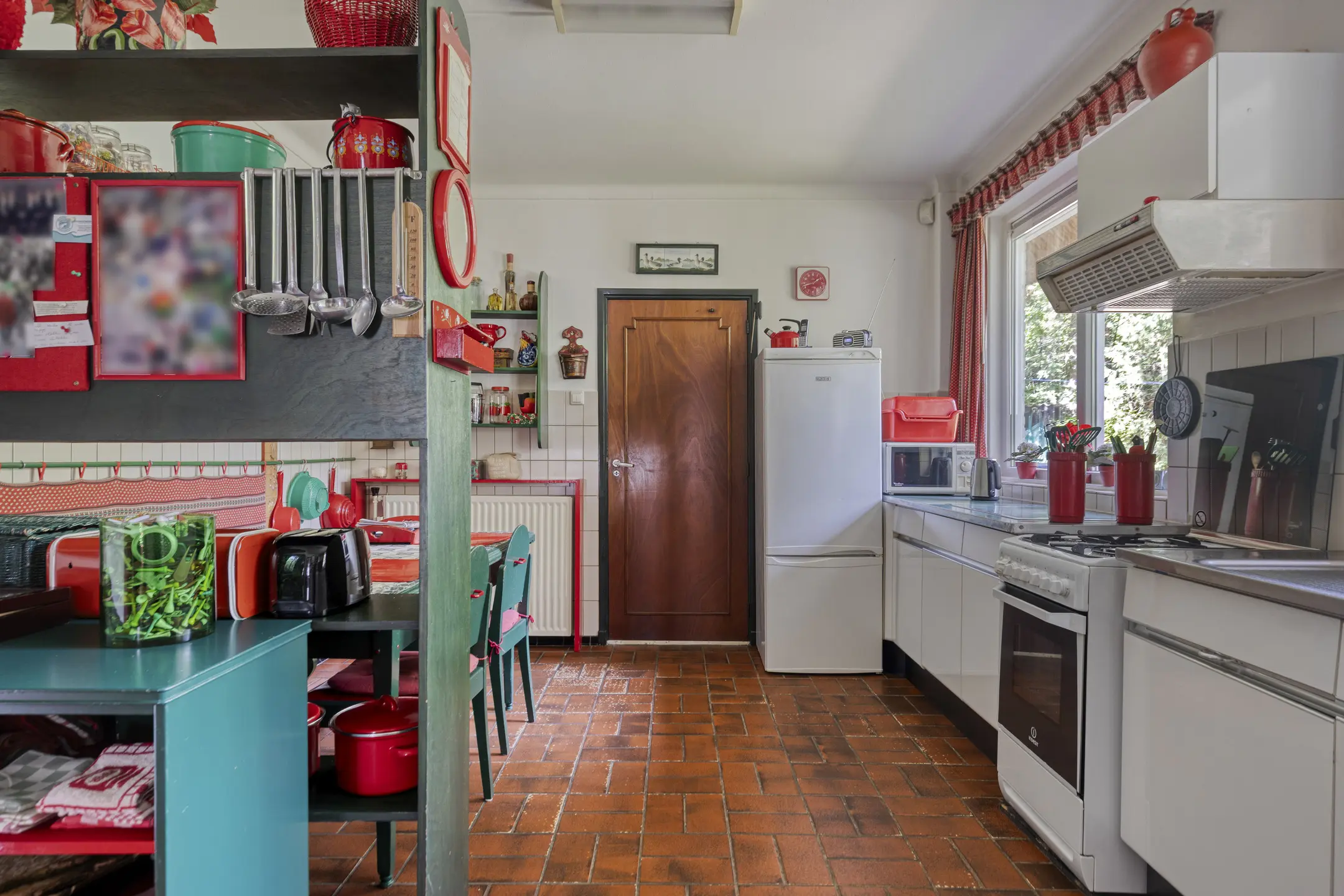 De keuken is royaal en praktisch, met volop kasten en werkruimte. Maar het mooiste is misschien wel de potentie: dankzij de ruimte kun je hier een moderne leefkeuken realiseren waar koken en gezellig samen zijn hand in hand gaan. Denk aan een groot kookeiland, een lange eettafel en openslaande deuren naar de tuin, hier kan jouw droomkeuken werkelijkheid worden. De huidige keuken is voorzien van een gasfornuis, afzuigsysteem, oven, losse vaatwasser en veel opbergruimte, dus je kunt er direct gebruik van maken. En terwijl je kookt, geniet je ook hier van een fantastisch uitzicht op de groene tuin.