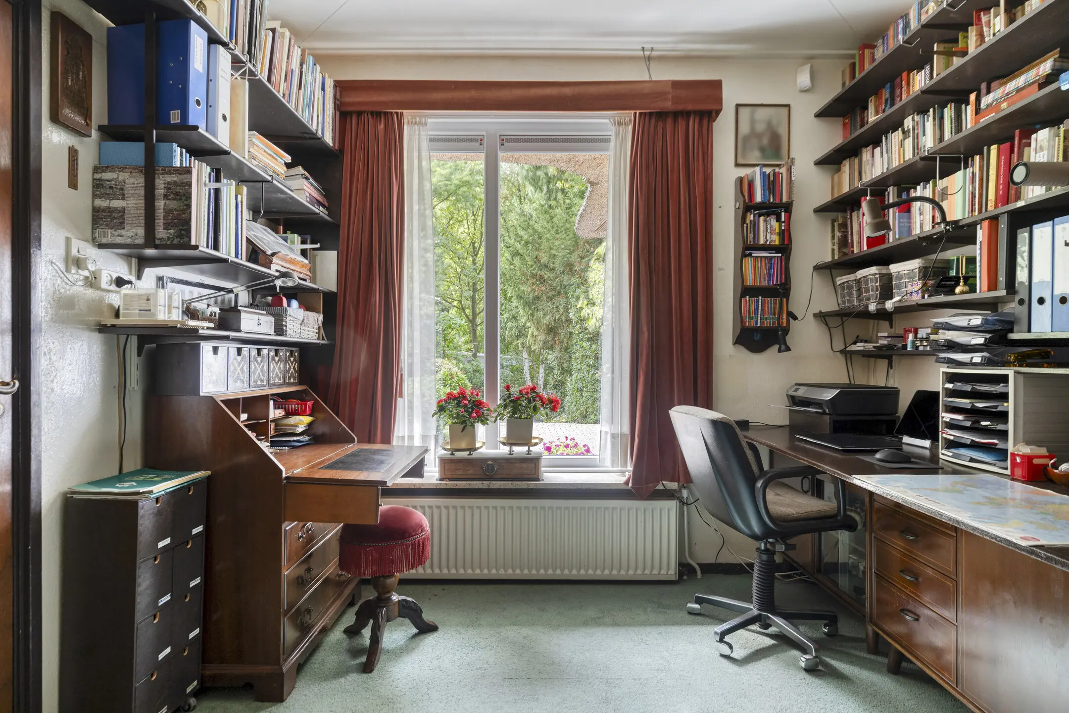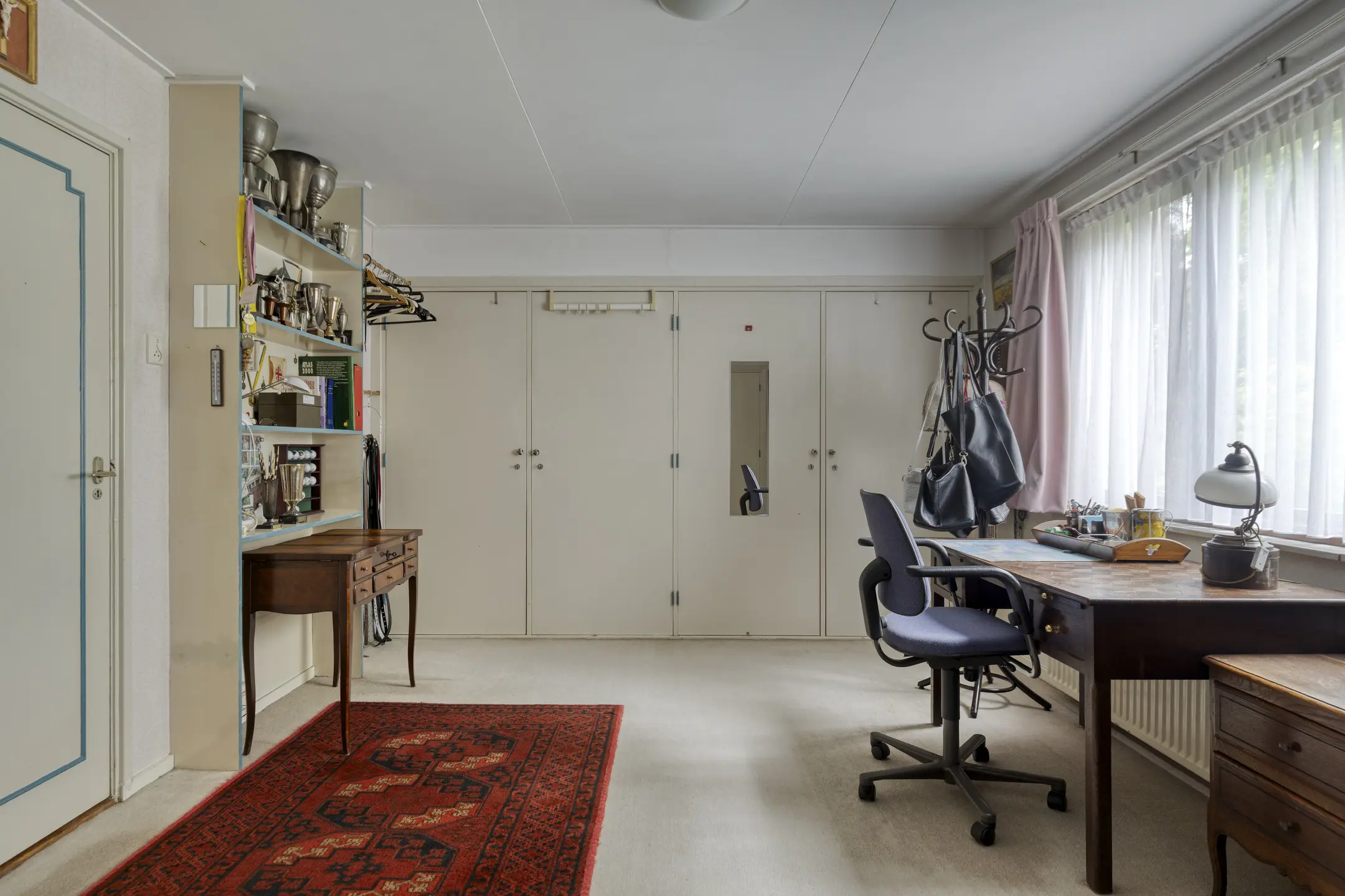 Slaapkamer 2 – nu ingericht als kantoor, maar dankzij de afmetingen ook ideaal als tienerkamer of logeerkamer.
