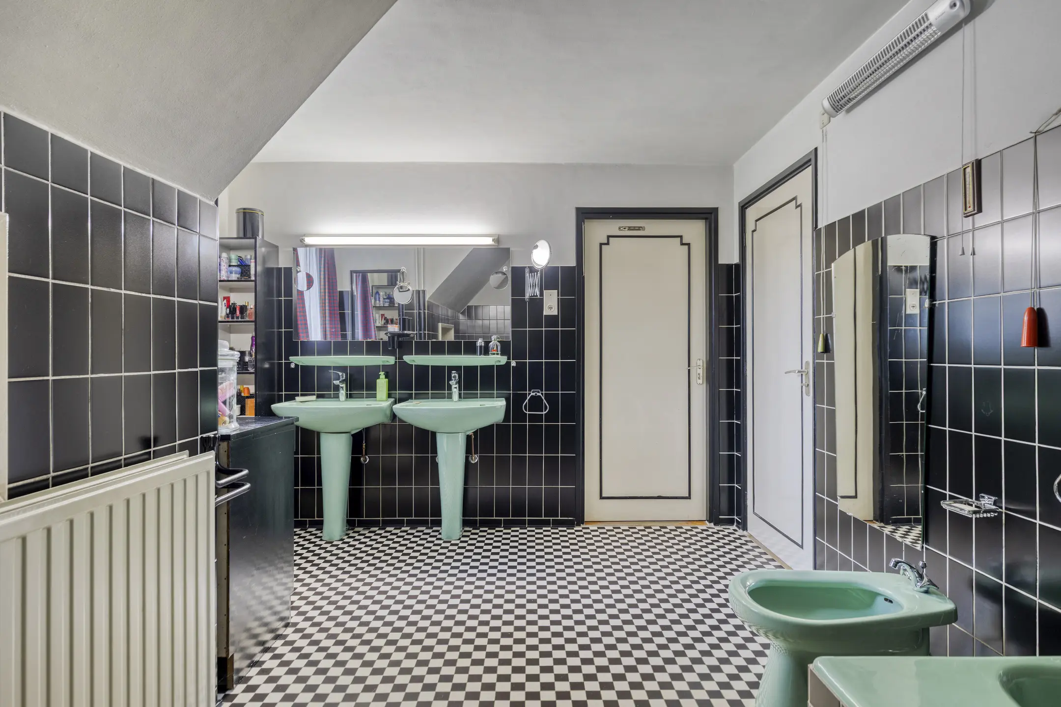 Deze badkamer is een droom voor wie houdt van groot. Er is genoeg ruimte om hier een moderne spa-achtige badkamer te creëren. Momenteel is hij voorzien van een ligbad met douche, toilet, bidet en dubbele wastafels. Hier zie je meteen de potentie!