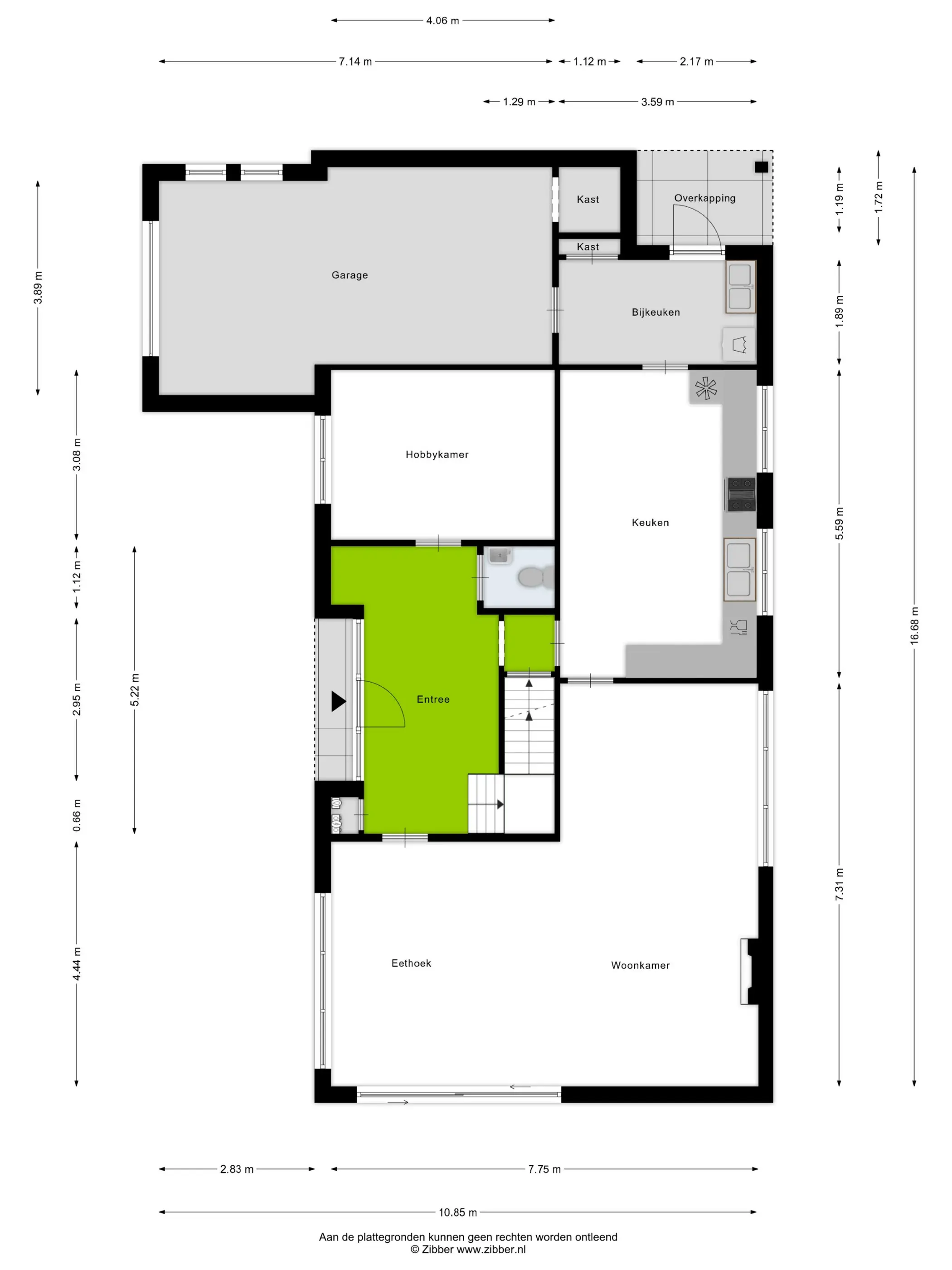 Eenmaal binnen kom je in de royale hal. Deze is ruim opgezet en geeft toegang tot het toilet, de meterkast, de kelder, de woonkamer, de hobbykamer én de trap naar boven. Het voelt direct als een huis met mogelijkheden.
