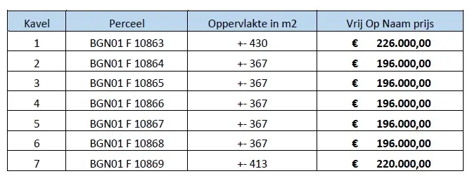 De kavels worden rechtstreeks door de gemeente verkocht.