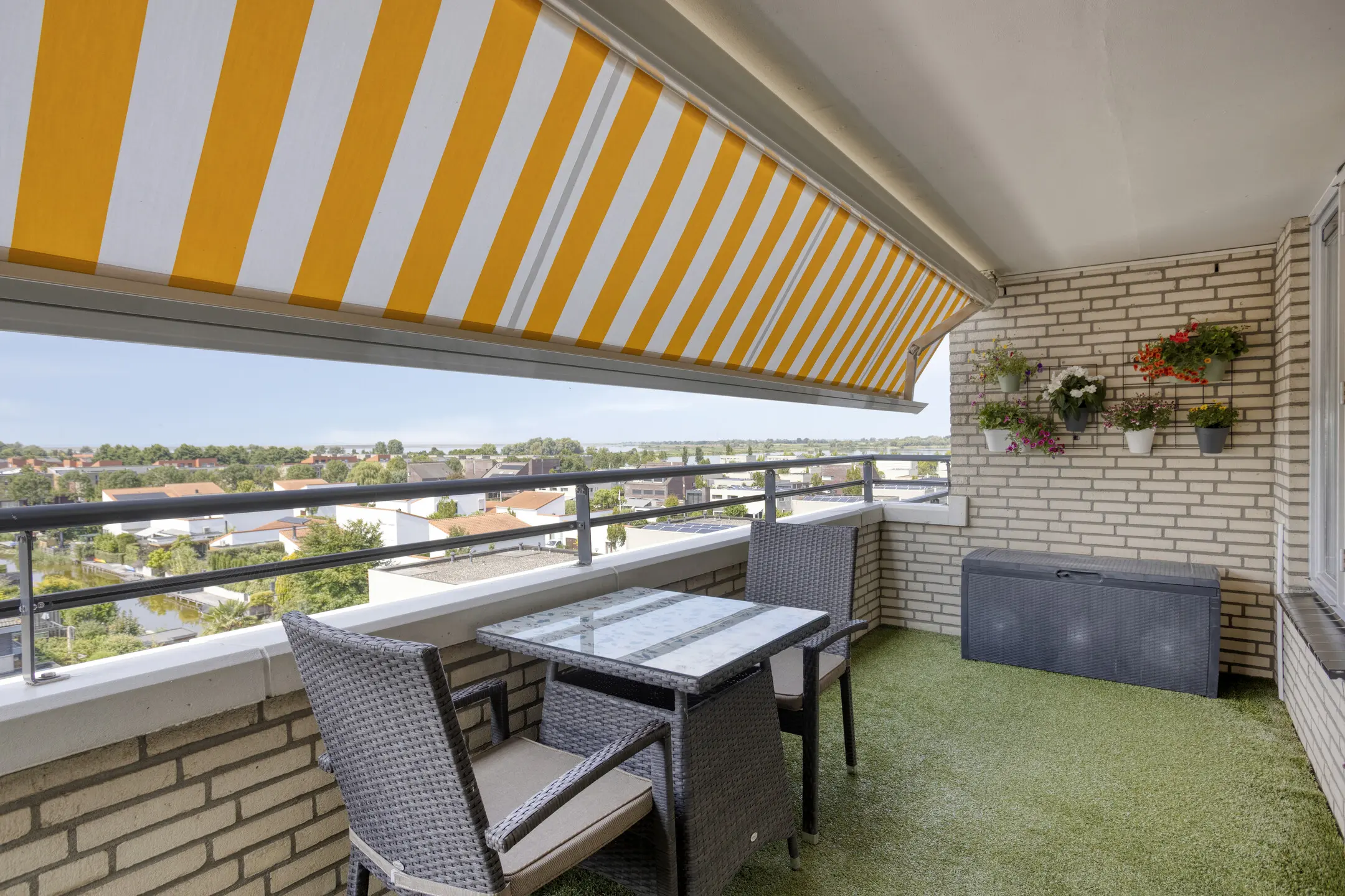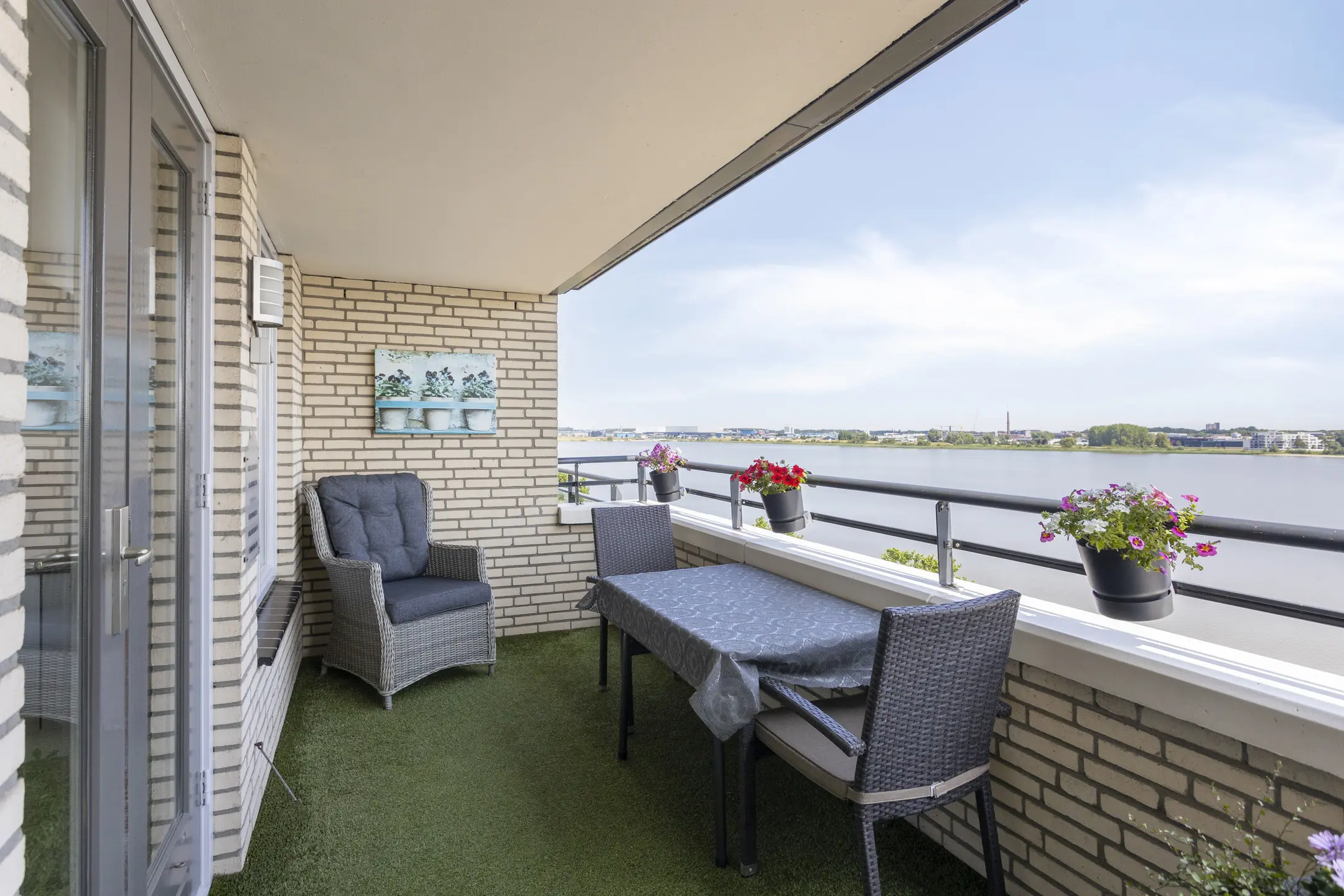 De open keuken grenst aan het eetgedeelte en biedt alle benodigde inbouwapparatuur, zoals een inductiekookplaat, vaatwasser, combi-oven en een ruime hoeveelheid kast- en lade-opbergruimte. Vanuit hier is er toegang tot het tweede balkon, wat zorgt voor een prettige lichtinval en een fijne plek voor bijvoorbeeld een ontbijt in de ochtendzon. Vanuit dit balkon kijkt u weids uit over de Binnenschelde.