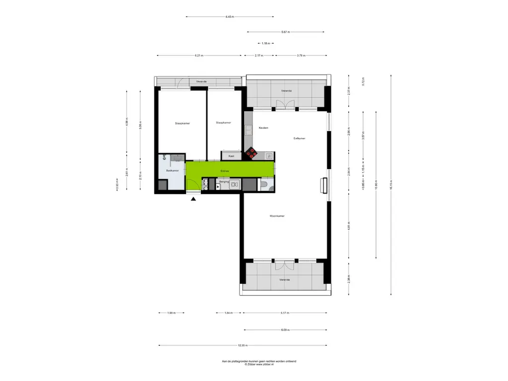 Bij binnenkomst in de hal valt direct de verzorgde afwerking op. Vanuit hier zijn de verschillende ruimtes toegankelijk, waaronder de twee slaapkamers, de badkamer, een apart toilet, de berging en natuurlijk de royale woonkamer.