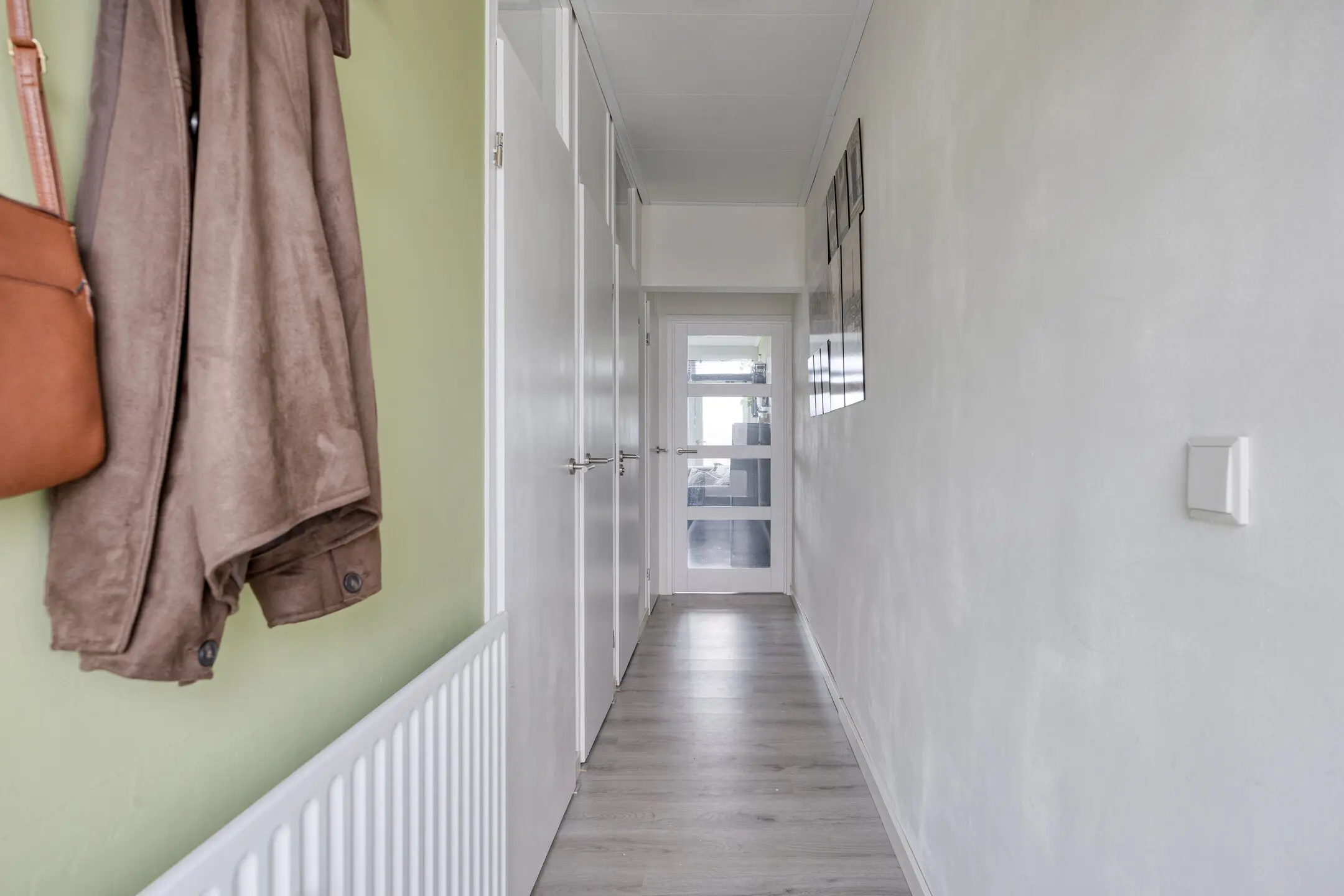 Via de nette centrale entree met bellentableau, brievenbussen, trappenhuis en lift bereik je de vierde verdieping. Hier bevindt zich dit verzorgde appartement dat direct een fijne, lichte indruk maakt.