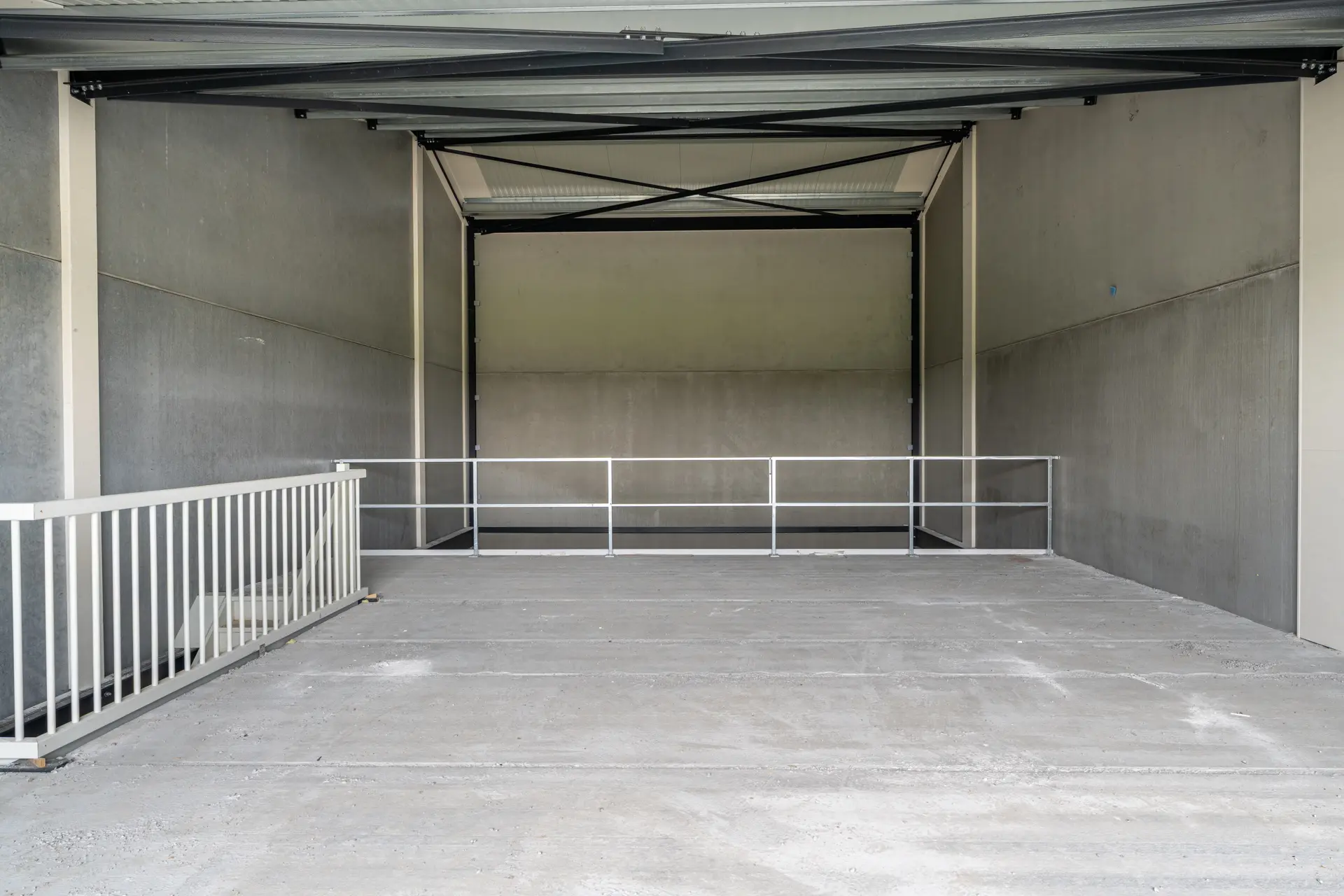 Deze moderne bedrijfsunit van ca. 200 m² is verdeeld over twee lagen. De begane grond (ca. 120 m²) is ingericht als bedrijfsruimte en voorzien van een elektrisch bedienbare overheaddeur en een monoliet afgewerkte betonvloer. De verdieping (ca. 80 m²) bestaat deels uit een verdiepingsvloer aan de voorzijde, ideaal als kantoor of opslag. Dankzij deze opzet blijft de vrije hoogte aan de achterzijde optimaal benutbaar. De gevel is voorzien van aluminium draai/kiepramen, wat zorgt voor veel natuurlijk lichtinval.