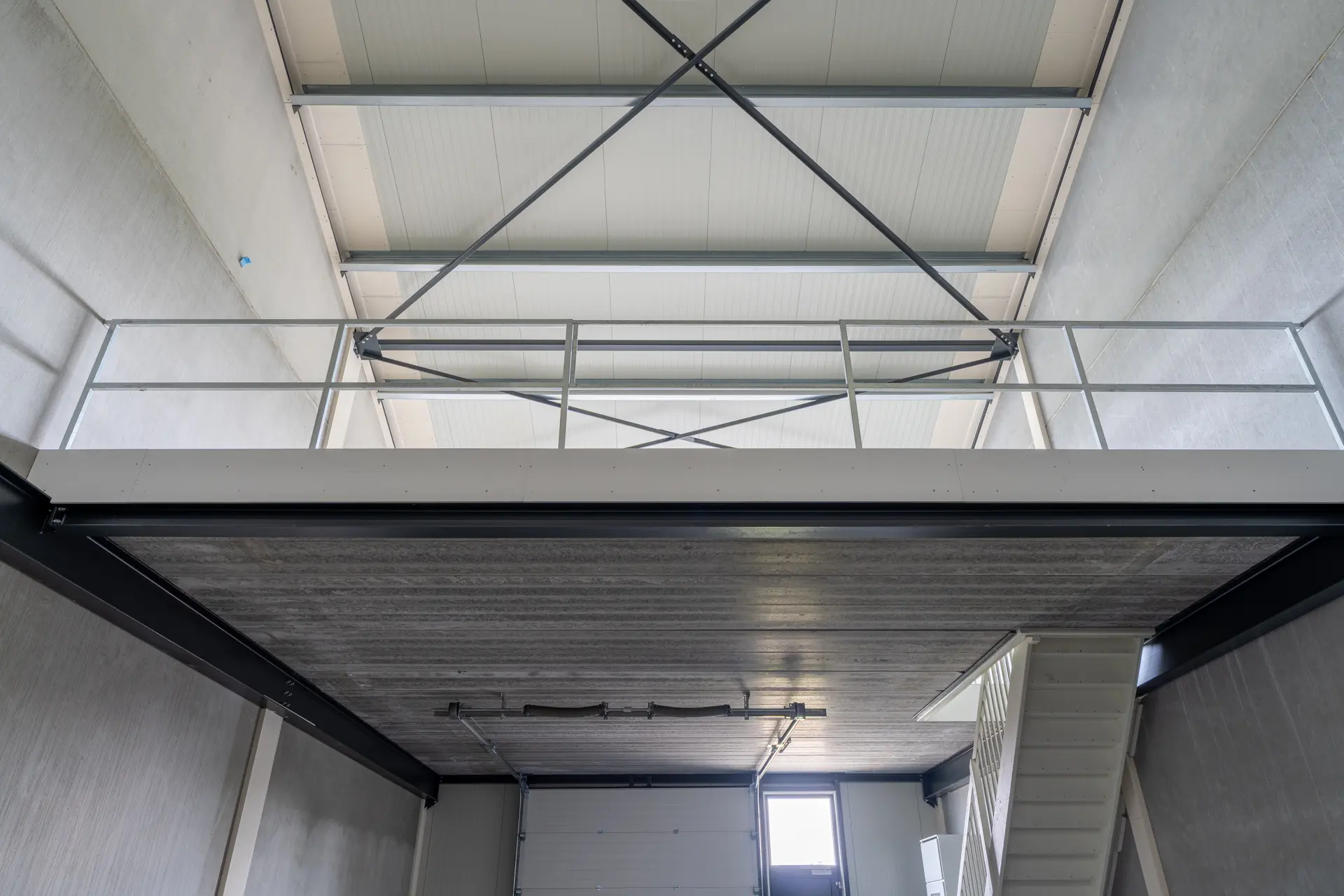 Deze moderne bedrijfsunit van ca. 200 m² is verdeeld over twee lagen. De begane grond (ca. 120 m²) is ingericht als bedrijfsruimte en voorzien van een elektrisch bedienbare overheaddeur en een monoliet afgewerkte betonvloer. De verdieping (ca. 80 m²) bestaat deels uit een verdiepingsvloer aan de voorzijde, ideaal als kantoor of opslag. Dankzij deze opzet blijft de vrije hoogte aan de achterzijde optimaal benutbaar. De gevel is voorzien van aluminium draai/kiepramen, wat zorgt voor veel natuurlijk lichtinval.