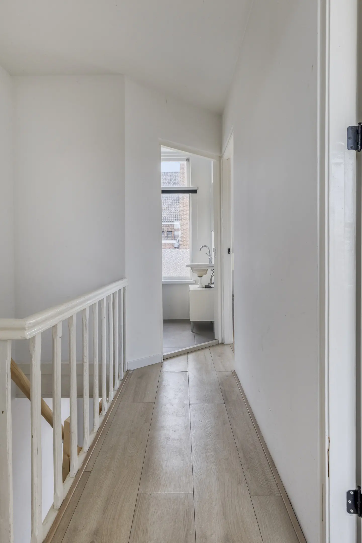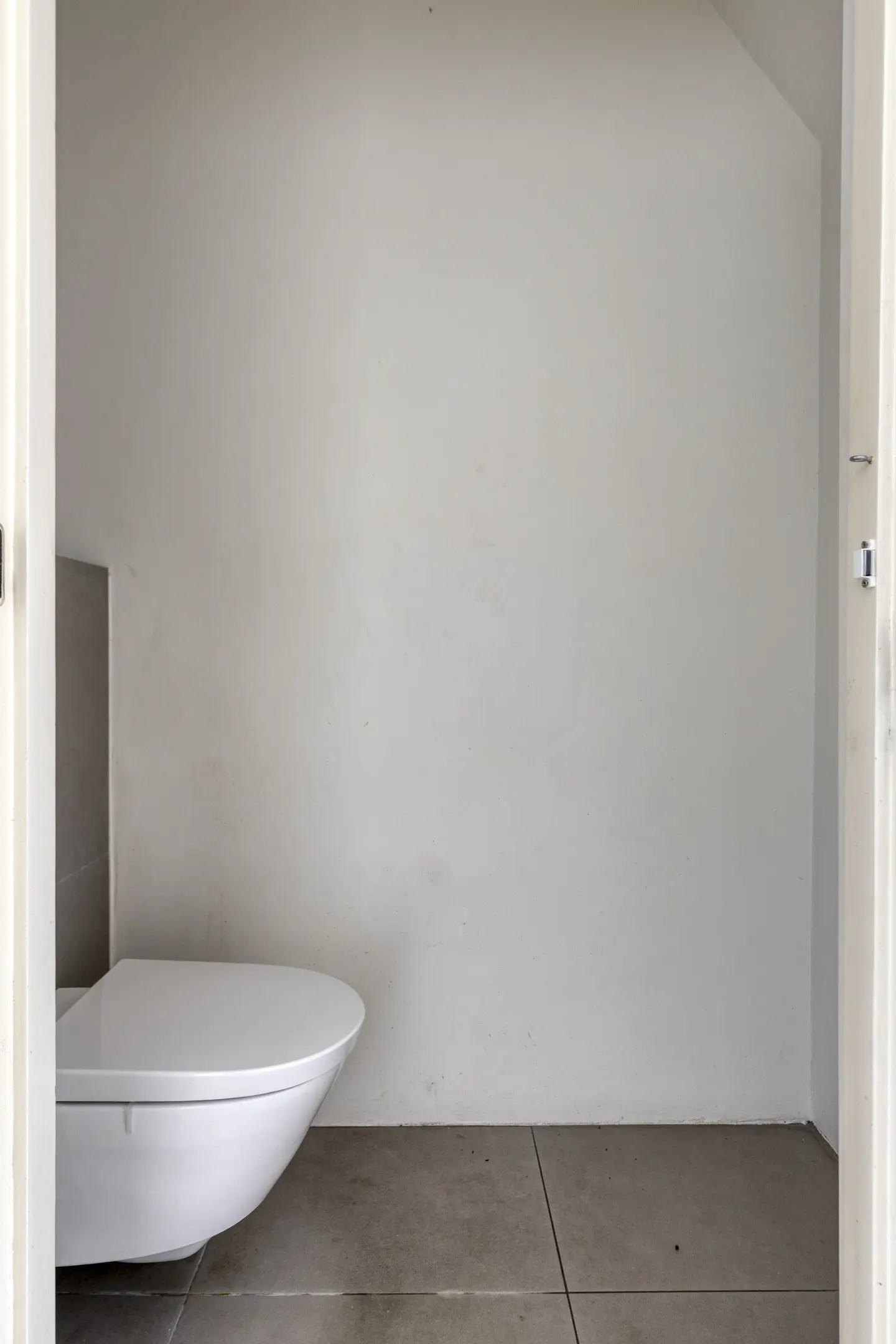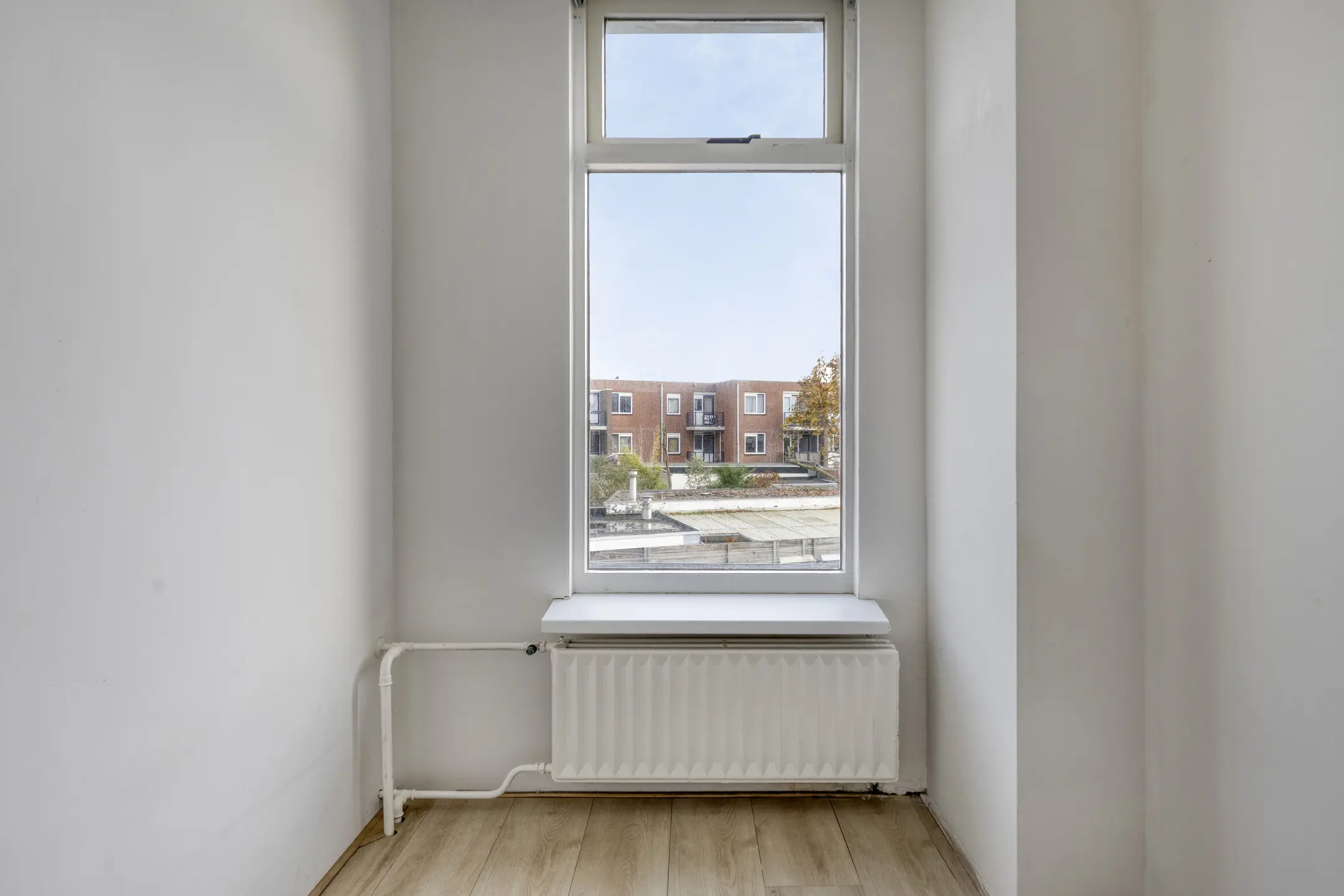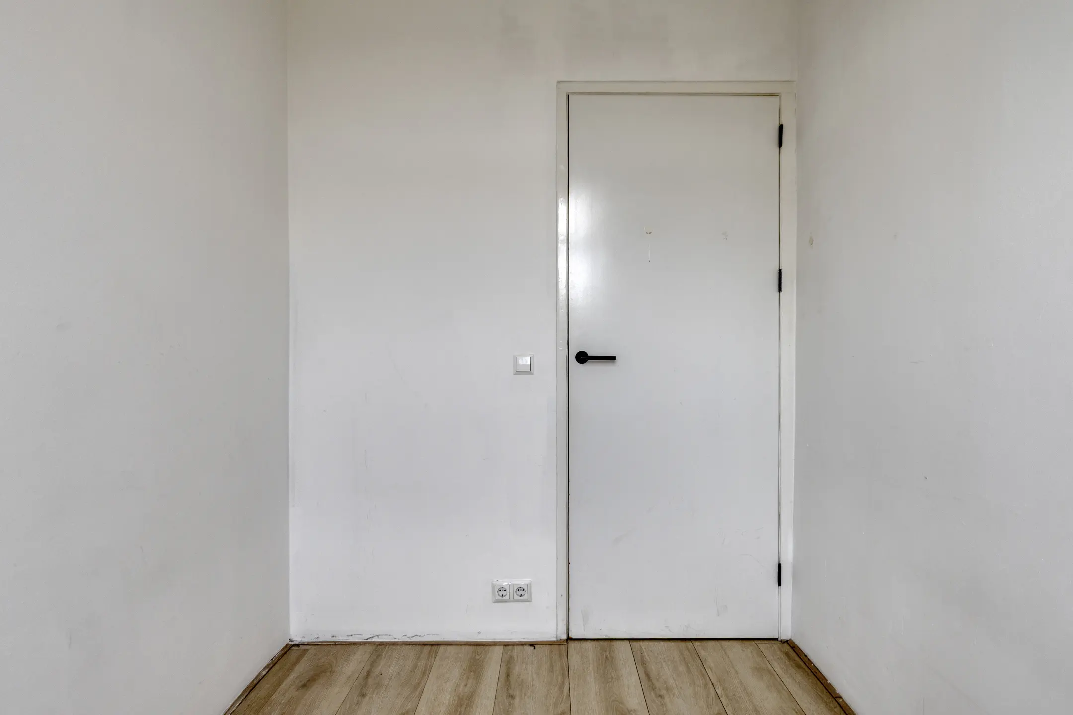 Ook de derde slaapkamer ligt aan de achterzijde en is knus en praktisch ingedeeld. Met voldoende daglicht is dit een ideale ruimte voor een logeerkamer, kleedkamer of stijlvolle walk-in closet.
