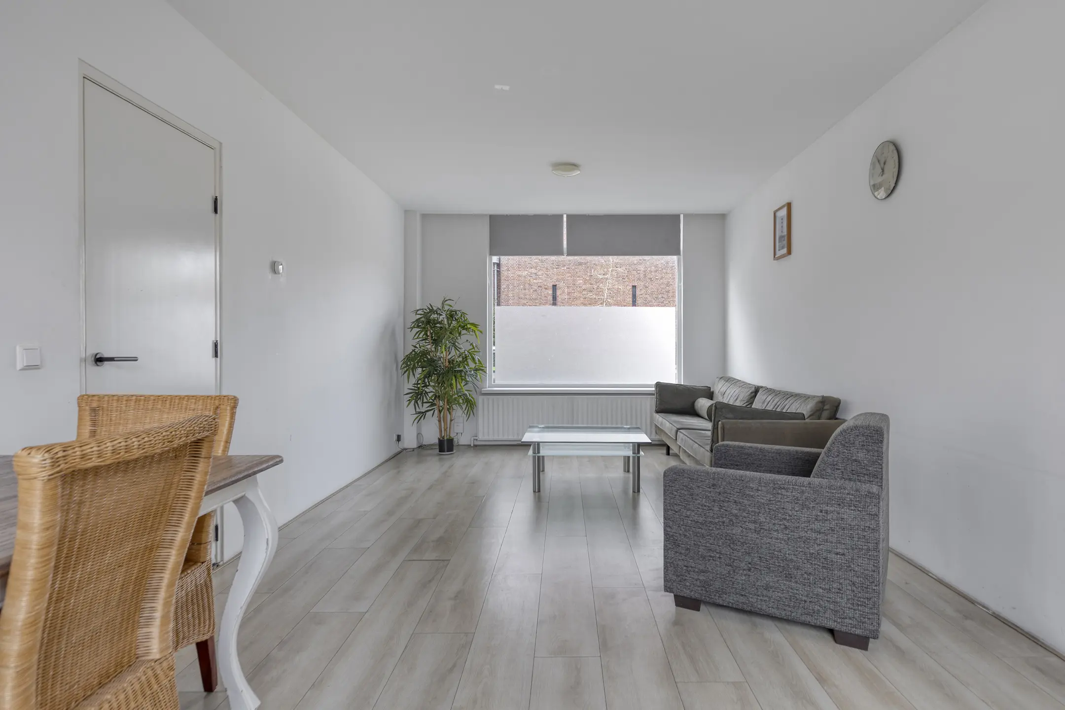 De woonkamer is licht en ruim door de brede raampartijen aan zowel de voor- als achterzijde. De ruimte is flexibel in te delen: creëer een ruime zithoek aan de voorzijde en een gezellige eethoek aan de achterzijde. Er is volop ruimte om de woonkamer persoonlijk en sfeervol in te richten.