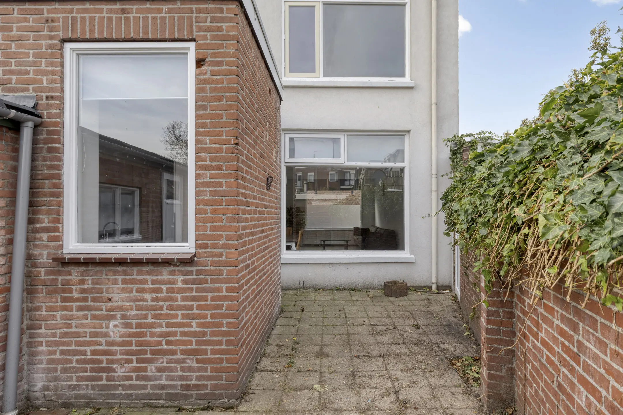 De tuin is volledig bestraat en biedt ruimte voor een gezellige zithoek. Achterin de tuin bevindt zich een praktische berging voor opslag of tuinspullen. Ook is hier de C.V- ketel gesitueerd.