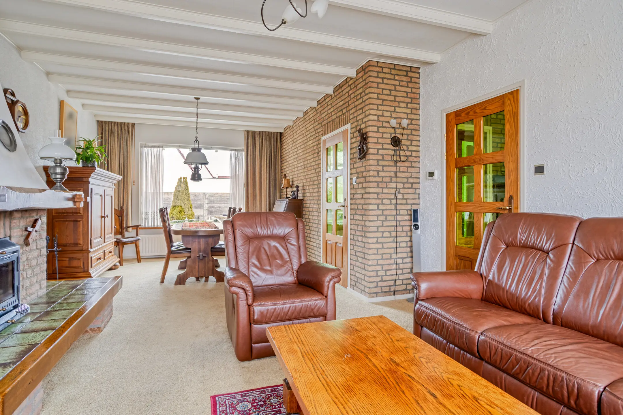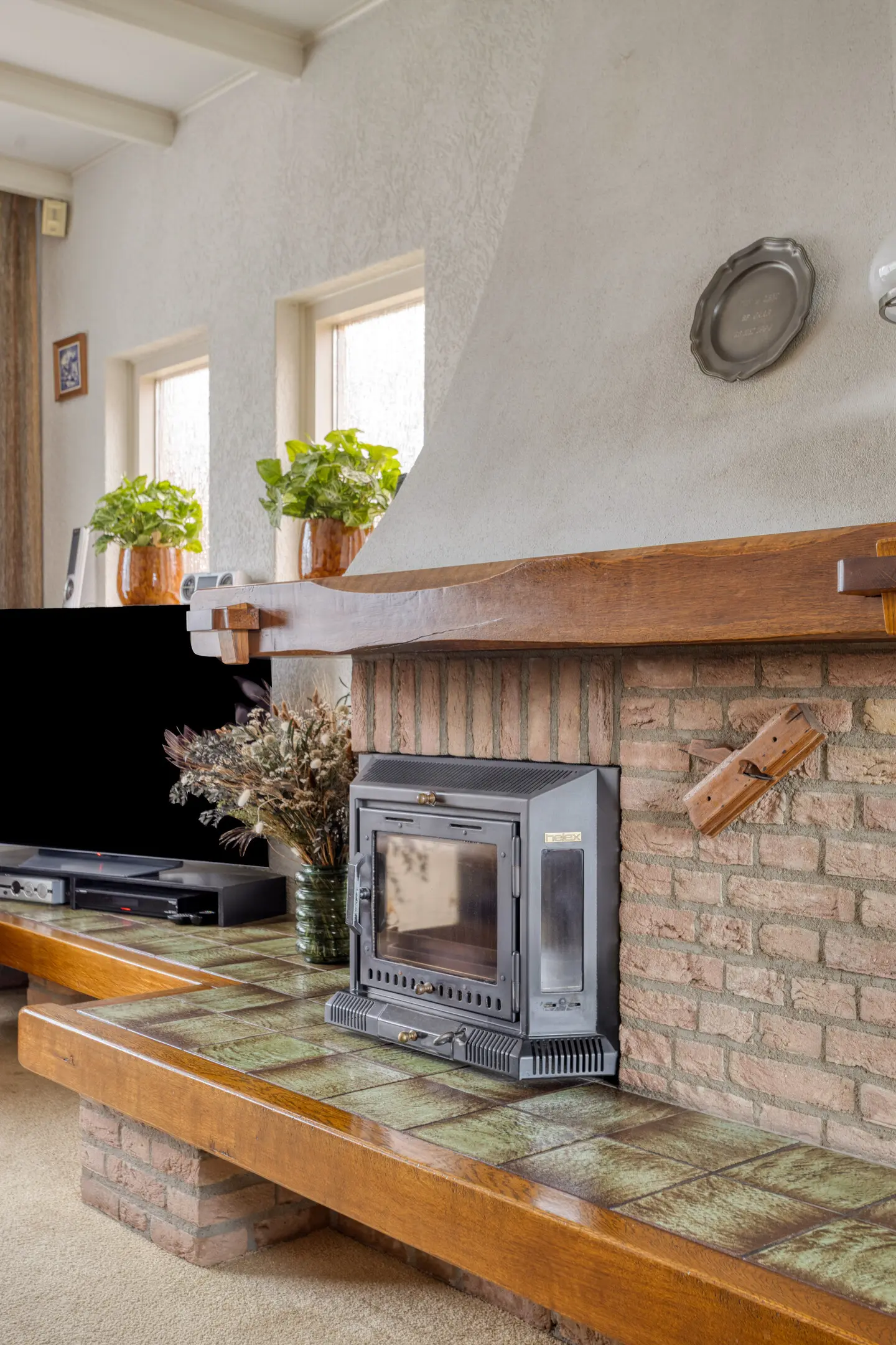 De woonkamer is een heerlijk lichte en uitnodigende leefruimte, mede dankzij de brede ramen aan beide zijden die zorgen voor een prettige hoeveelheid natuurlijk daglicht gedurende de hele dag. De open haard in schouw vormt een sfeervol middelpunt en geeft de ruimte een warme, knusse uitstraling. Dankzij de royale afmetingen is er volop plek voor een comfortabele zithoek én een gezellige eethoek, waardoor dit de ideale ruimte is om samen te komen, te ontspannen en te genieten van lange avonden met familie en vrienden.