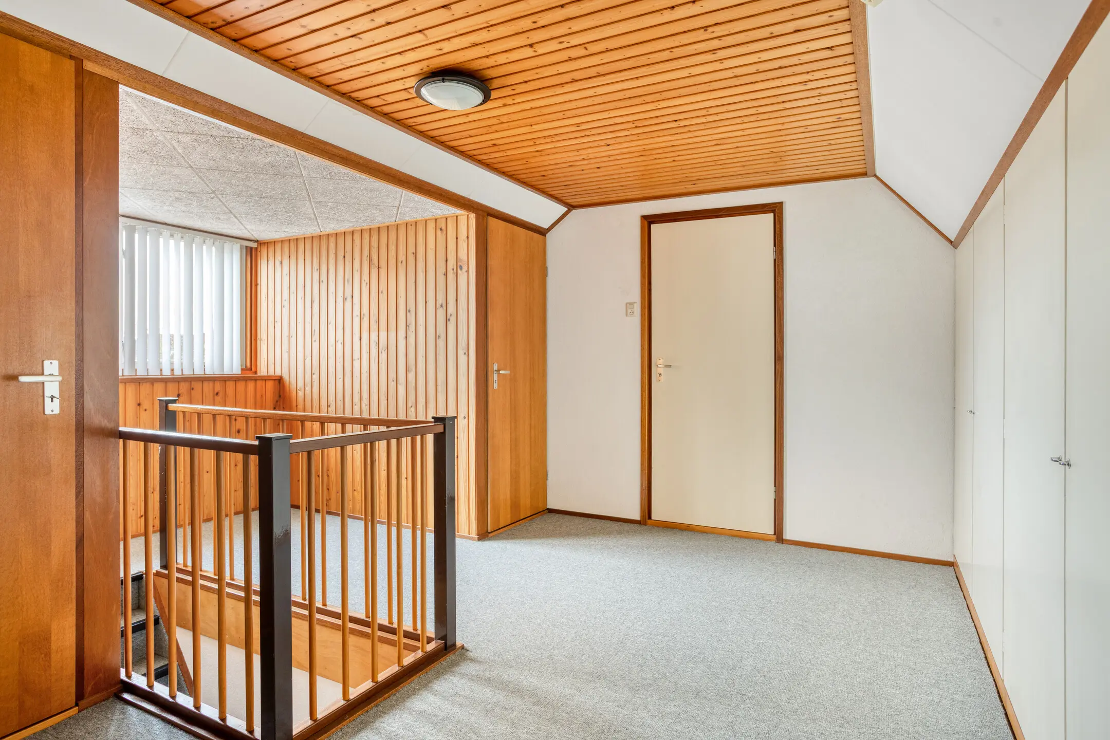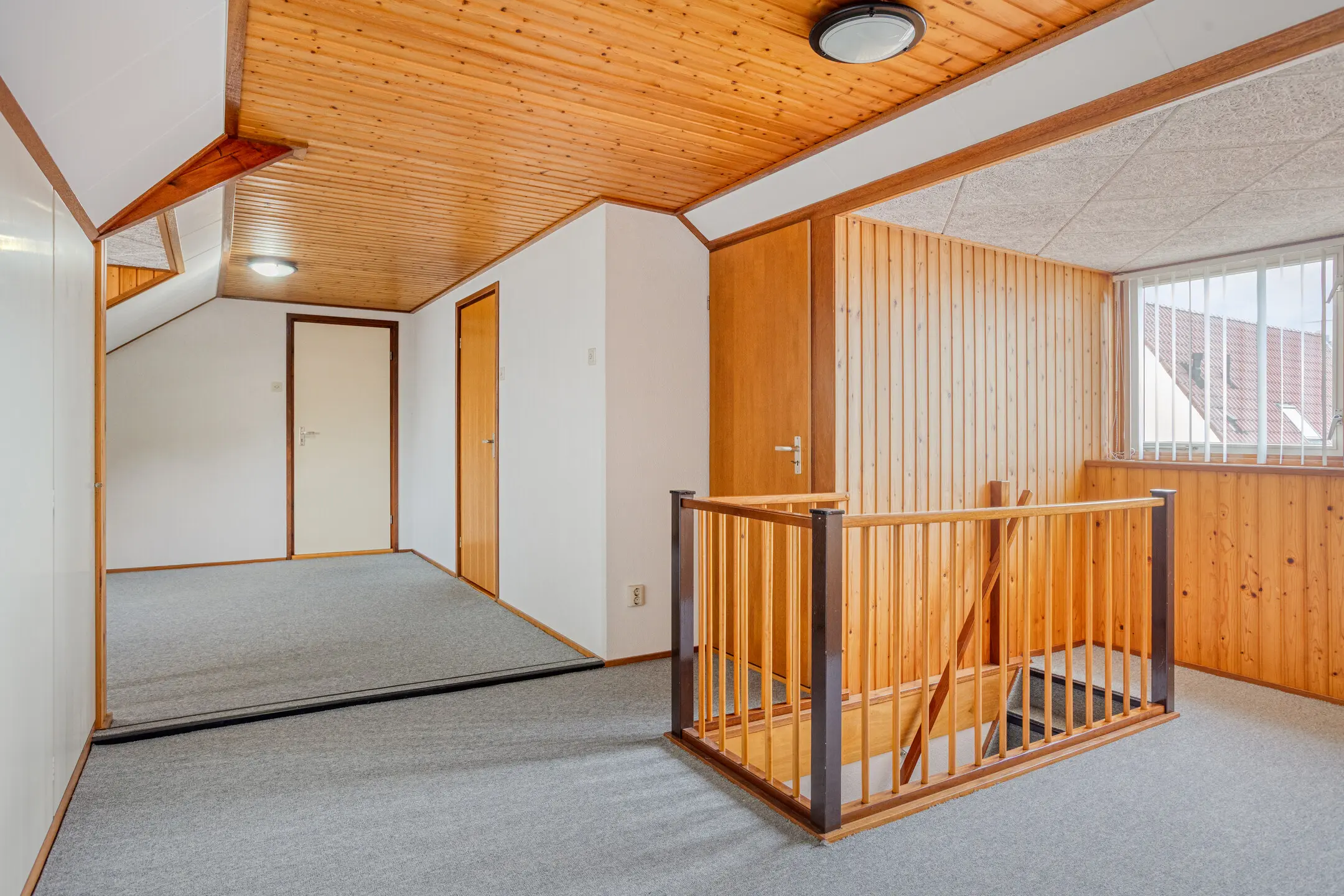 Een riante overloop met toegang tot 2 ruime slaapkamers en een praktische berging. Perfect als extra slaapkamers, thuiskantoor, hobbyruimte of chillplek voor tieners.