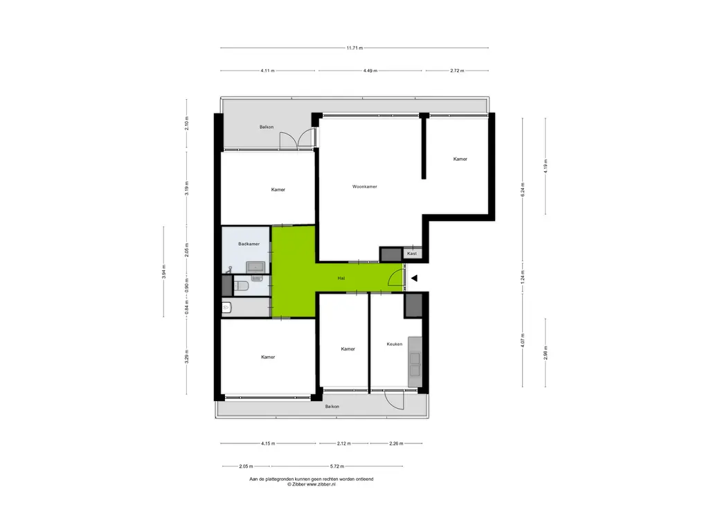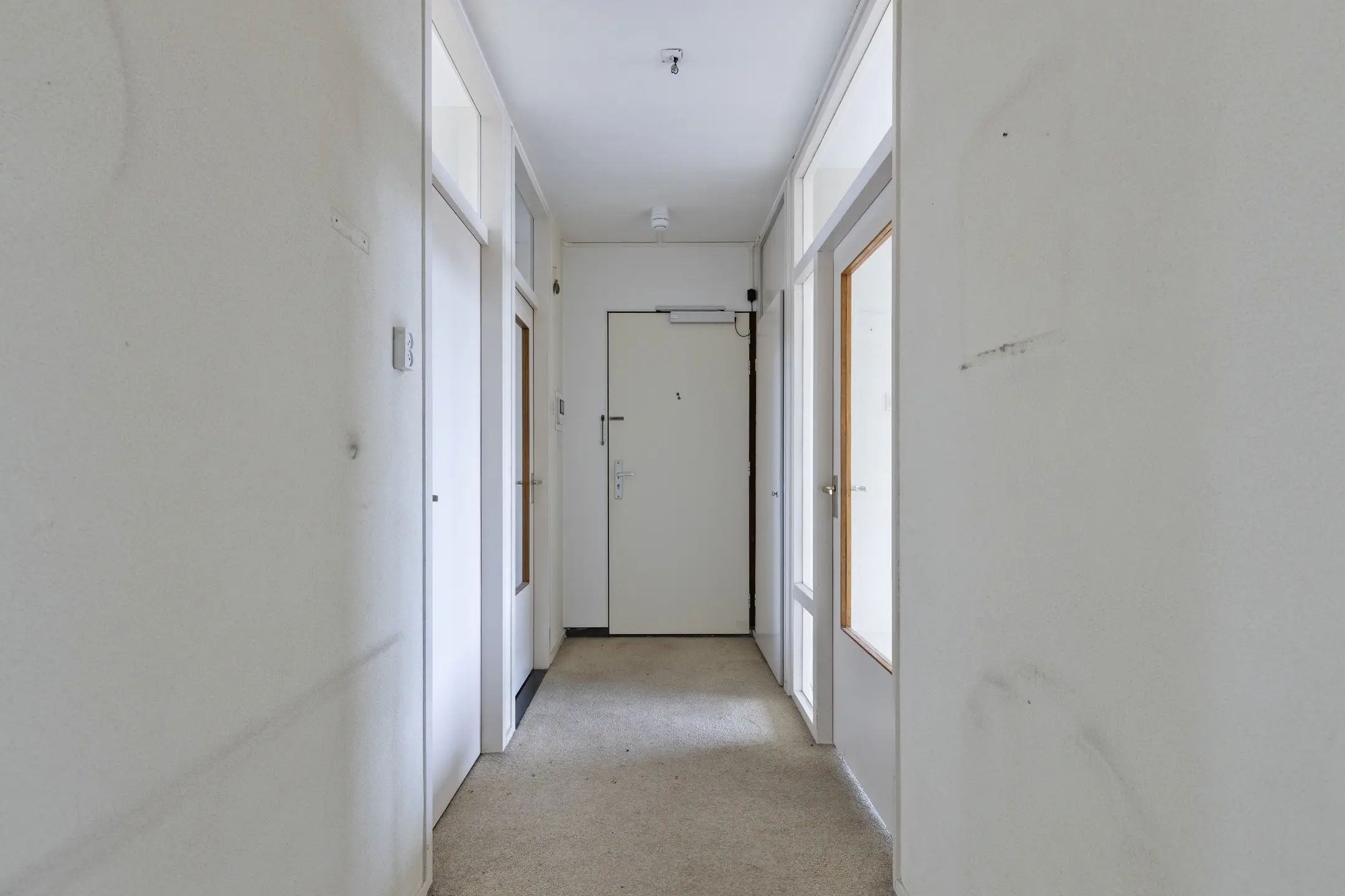 Bij binnenkomst betreed je de hal. Hier vind je de intercominstallatie en vanuit deze hal heb je toegang tot vrijwel alle vertrekken in de woning.