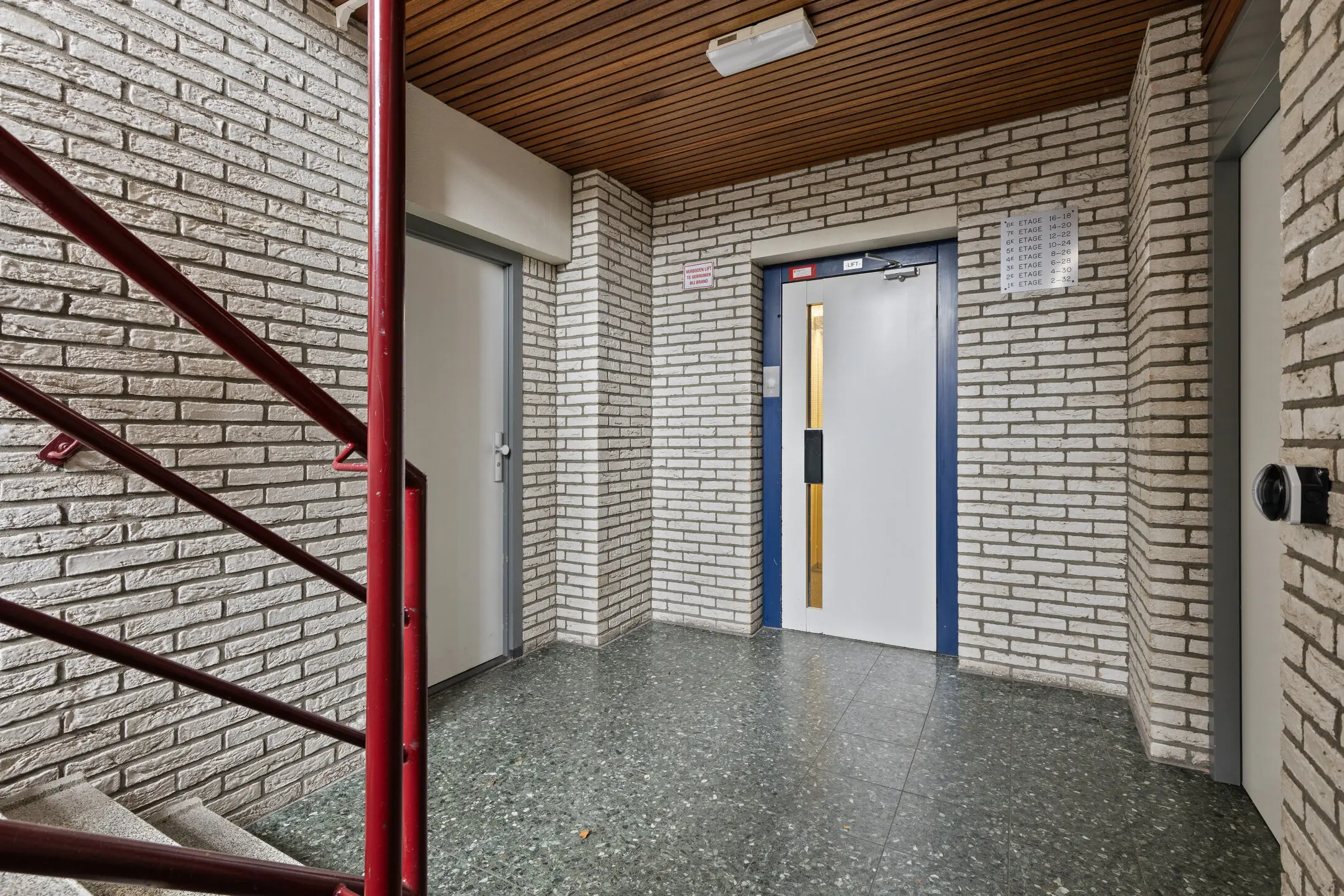 Entree via centrale hal, appartementencomplex heeft de beschikking over een liftinstallatie, brievenbus en trappenhuis.