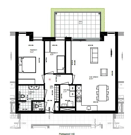 Er zijn 8 verschillende types beschikbaar met een oppervlak van 76m2 tot 92 m2 exclusief buitenruimte (balkon/tuin) en alle appartementen worden opgeleverd inclusief parketvloer (tegels in badkamer en toilet), hoogwaardige keukeninrichting en -sanitair.