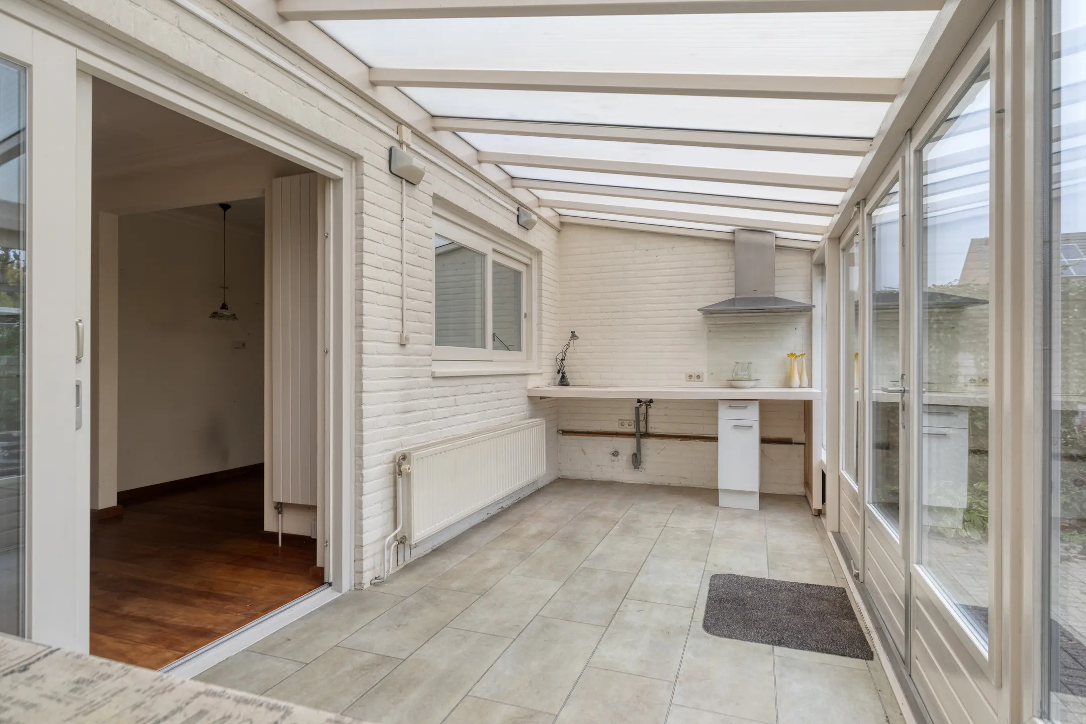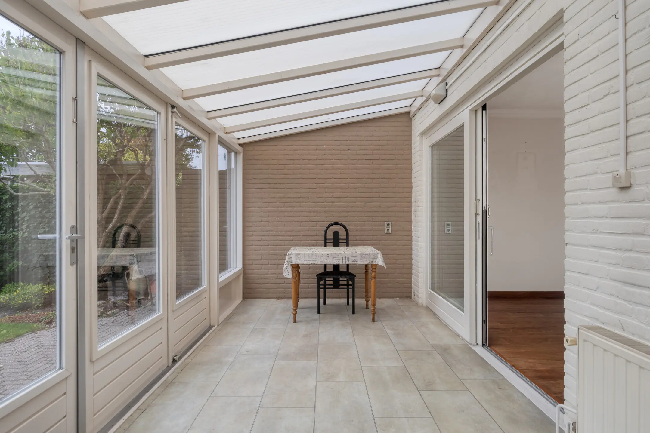 Aan de achterzijde van de woning bevindt zich de serre, bereikbaar via een glazen schuifpui. Deze ruimte biedt volop mogelijkheden: een royale eethoek, een extra leefruimte of zelfs een tweede keuken (afzuigkap is al aanwezig). Vanuit de aanbouw leiden openslaande deuren direct naar de achtertuin.